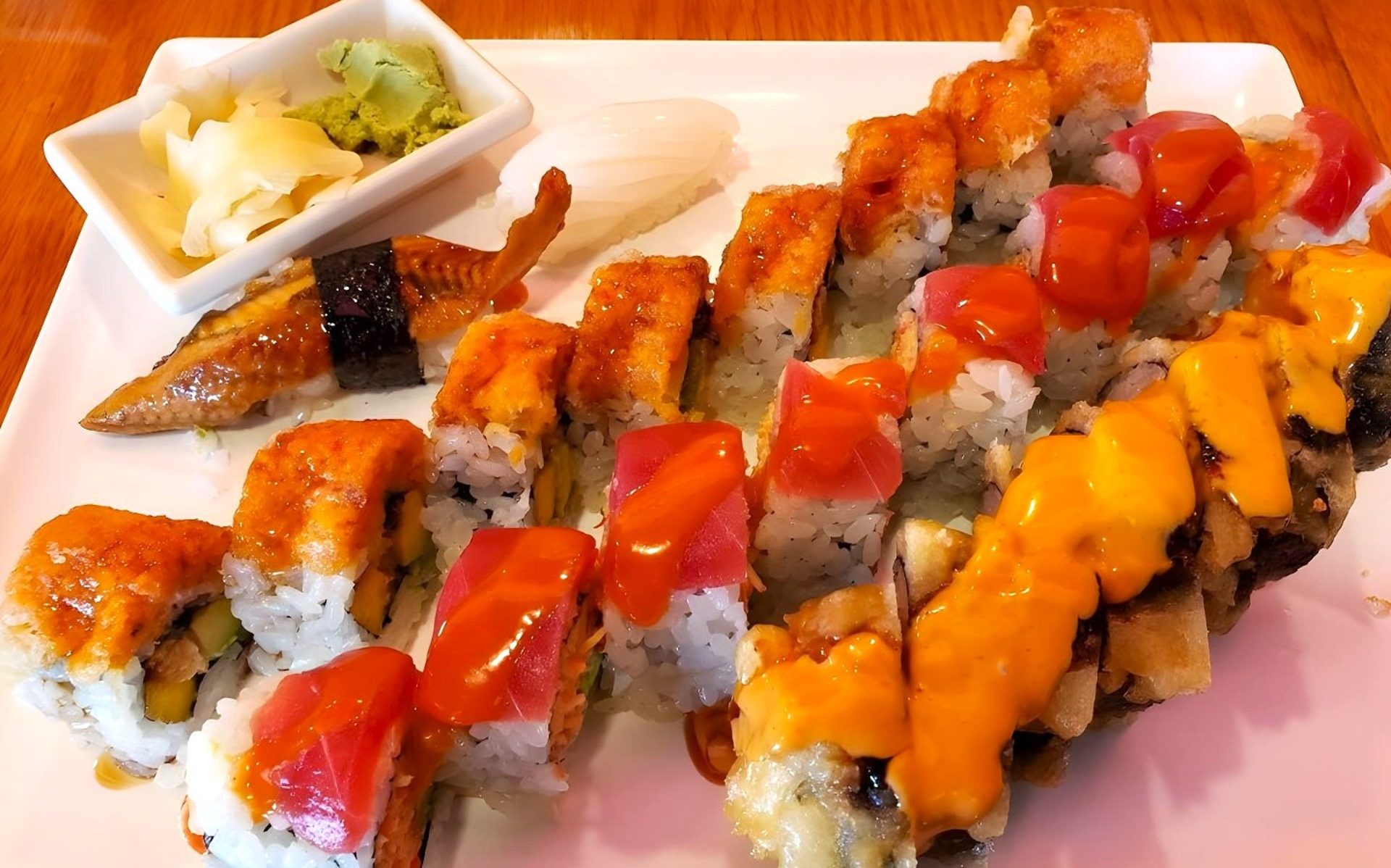 We are known for Spicy Salmon Roll, Alaska Roll, Vegetable Roll, Spring Rolls, Seafood, Edamame, Teriyaki, Miso, Shrimp Tempura Roll, Pad Thai, California Roll, Fish, Japanese, Tempura, Inari, House Salad, Spicy Tuna Roll, Salmon, Salads, Tuna Roll, Miso Soup, Unagi, Crab, Calamari, Cucumber Roll, Rainbow Roll, Maki Roll, Udon, Shrimp, Philadelphia Roll, Salmon Roll, Asian Food, Dragon Roll, Sake, Chicken Fried Rice, Sashimi, Vegetarian Food, Gyoza, Tofu, Avocado Roll, Volcano Roll, Soup, Japanese Food, and Spicy Crab Roll